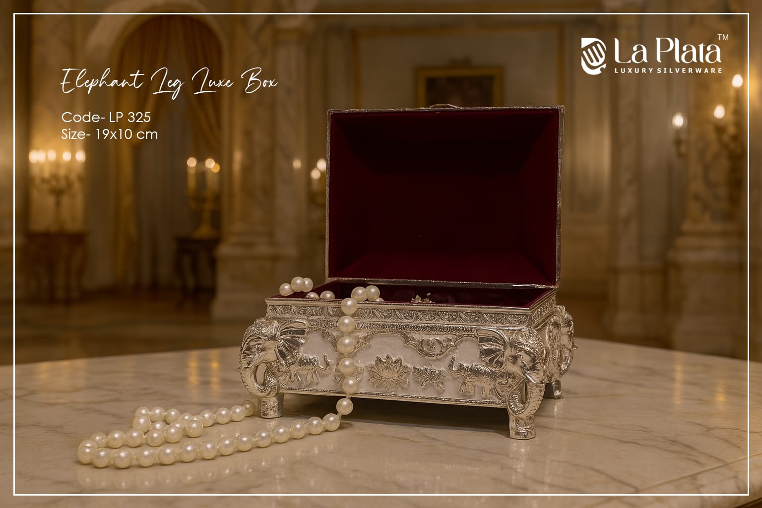 A statement piece crafted with distinctive elephant-leg style supports, this luxe silver tray exudes grandeur and traditional charm. The elevated design adds a royal touch while ensuring sturdy functionality. Perfect for serving or display, its intricate detailing and premium finish make it a standout addition to any elegant setting.