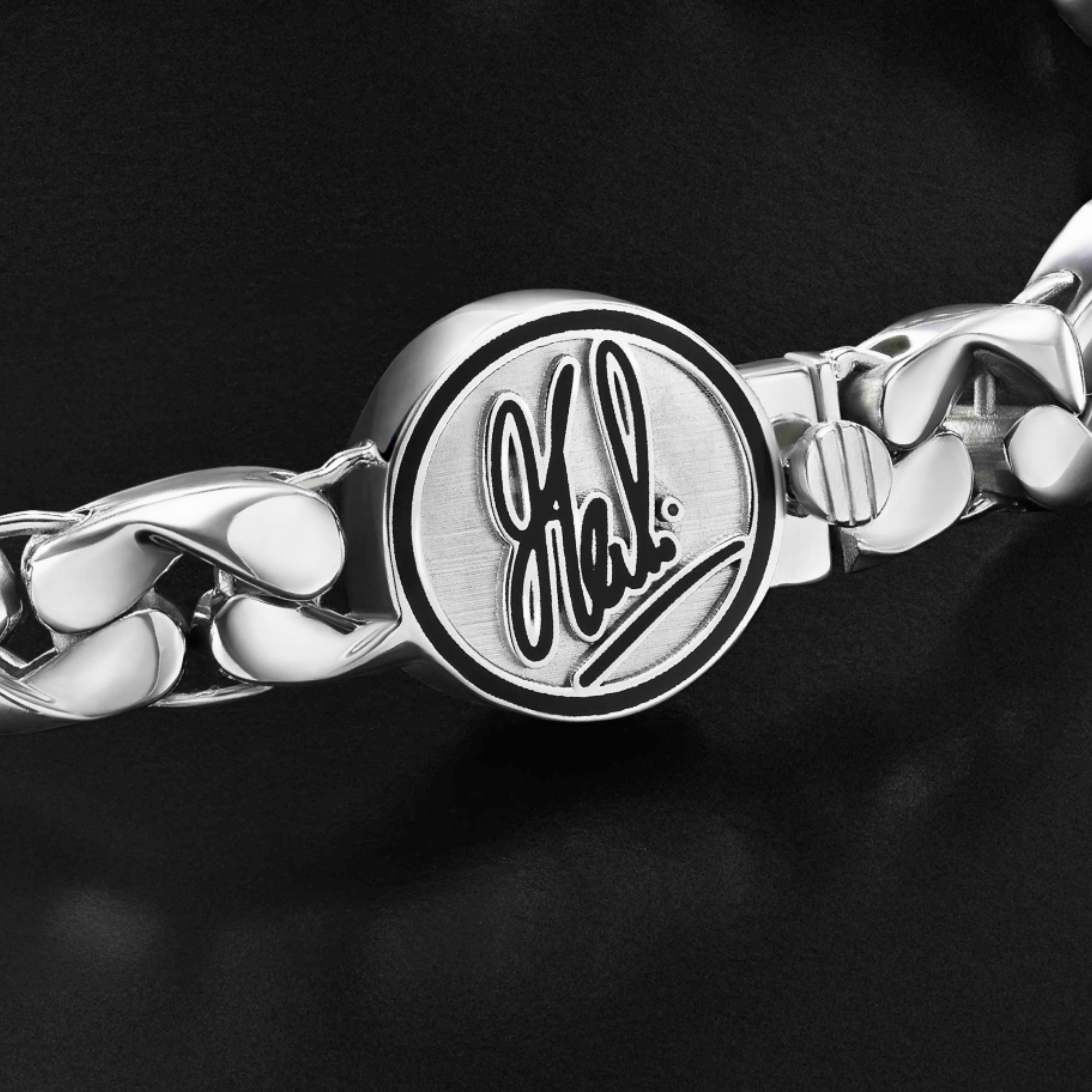 Bold interlocking platinum links form a robust bracelet, that reflects the power of unyielding resilience. It features a solid clasp bearing MS Dhoni’s iconic signature embodies his indomitable strength and unwavering resolve. Crafted from 95% pure platinum – a metal that remains unfading over time, making it incredibly rare – this bracelet is created for men who cherish these rare values, inspiring them to find the greatness that lies within.