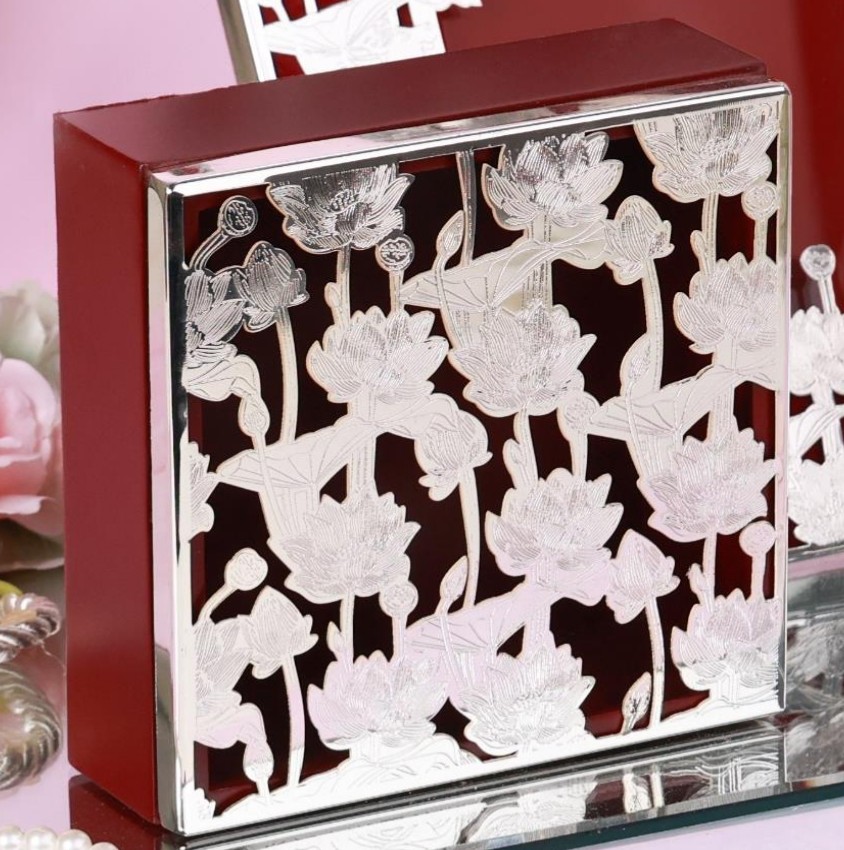 A beautifully crafted silver sweet box enhanced with rich red accents, symbolizing festivity and celebration. Designed with fine detailing and a polished finish, this box is perfect for storing and presenting sweets, dry fruits, or gifting items. Its vibrant look adds a luxurious and festive touch to any occasion.
